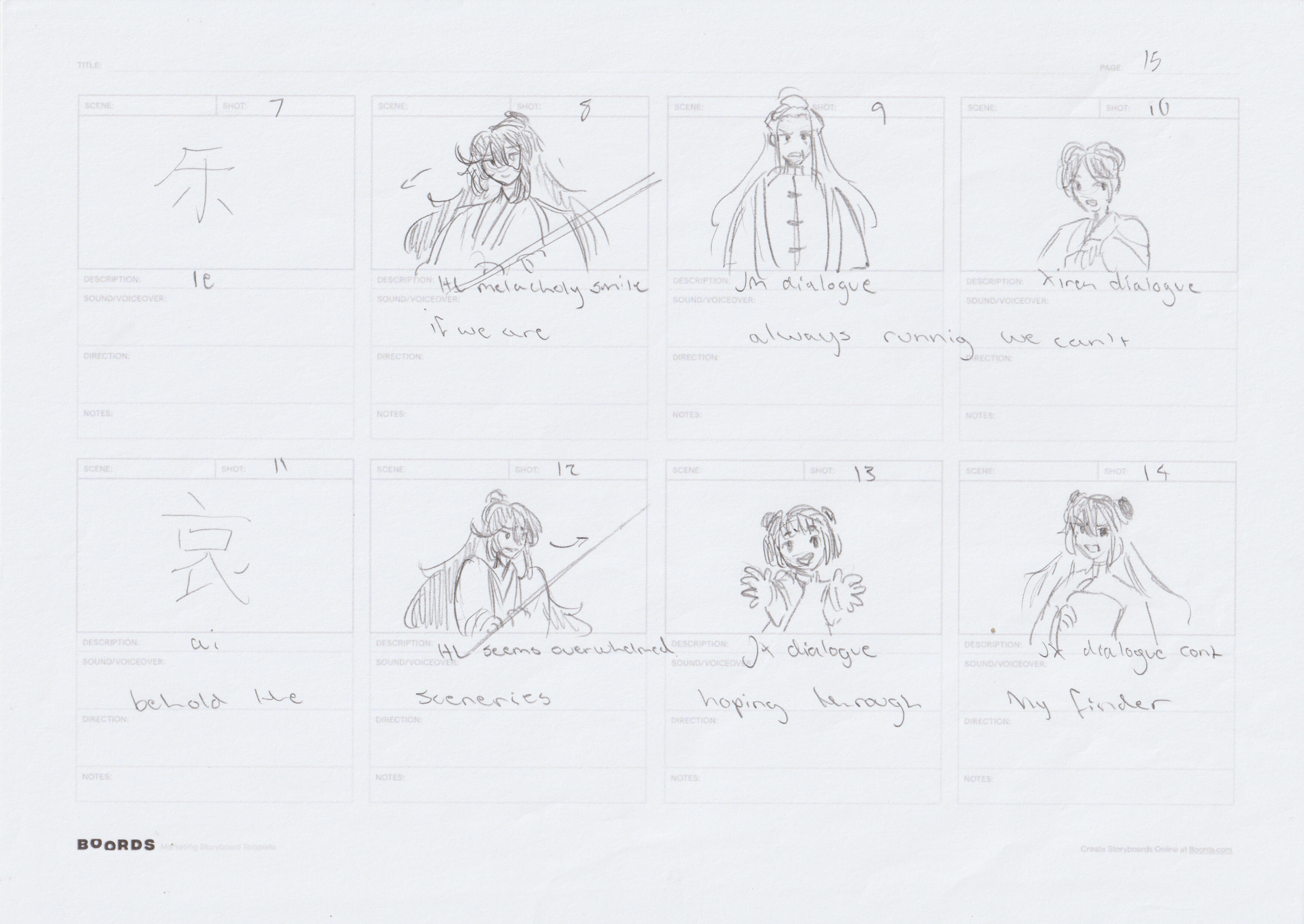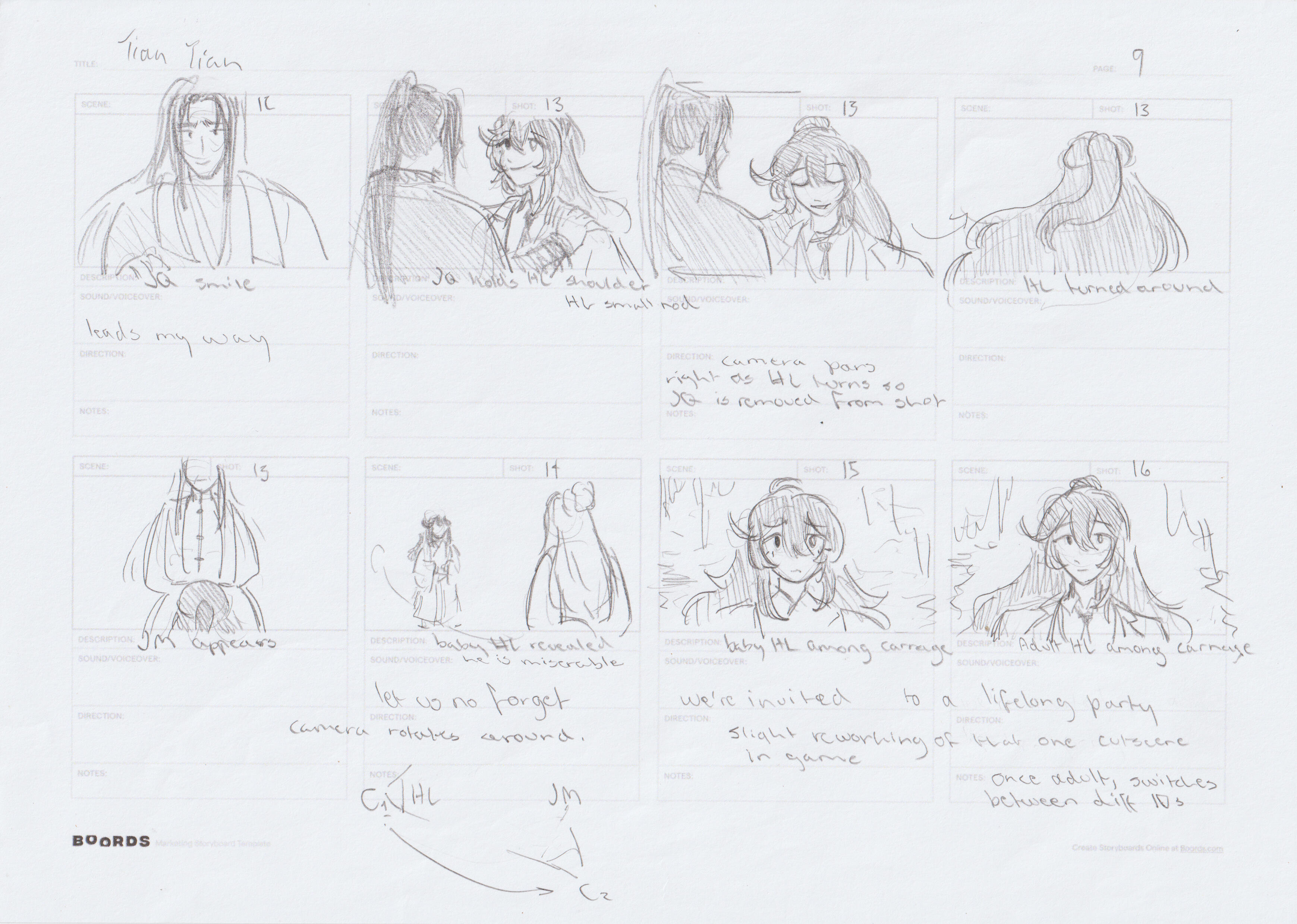 Among this storyboard there is a lot of visual reference towards events and motifs depicted in game, as well as further referencing back to hong lu's source book dream of the red chamber by cao xueqin.