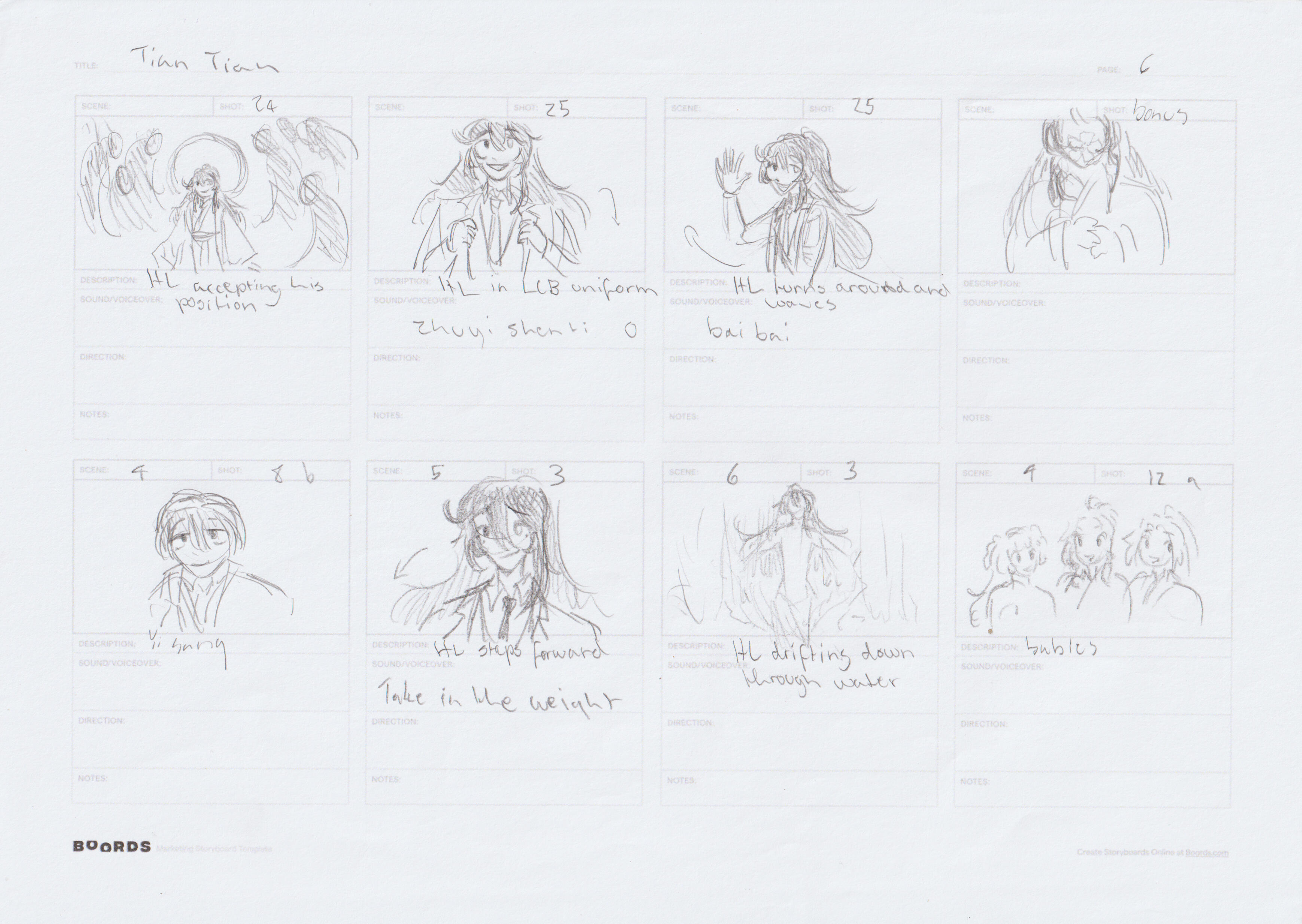 Storyboards for a personal fanart amv project of part of the game Limbus Company.