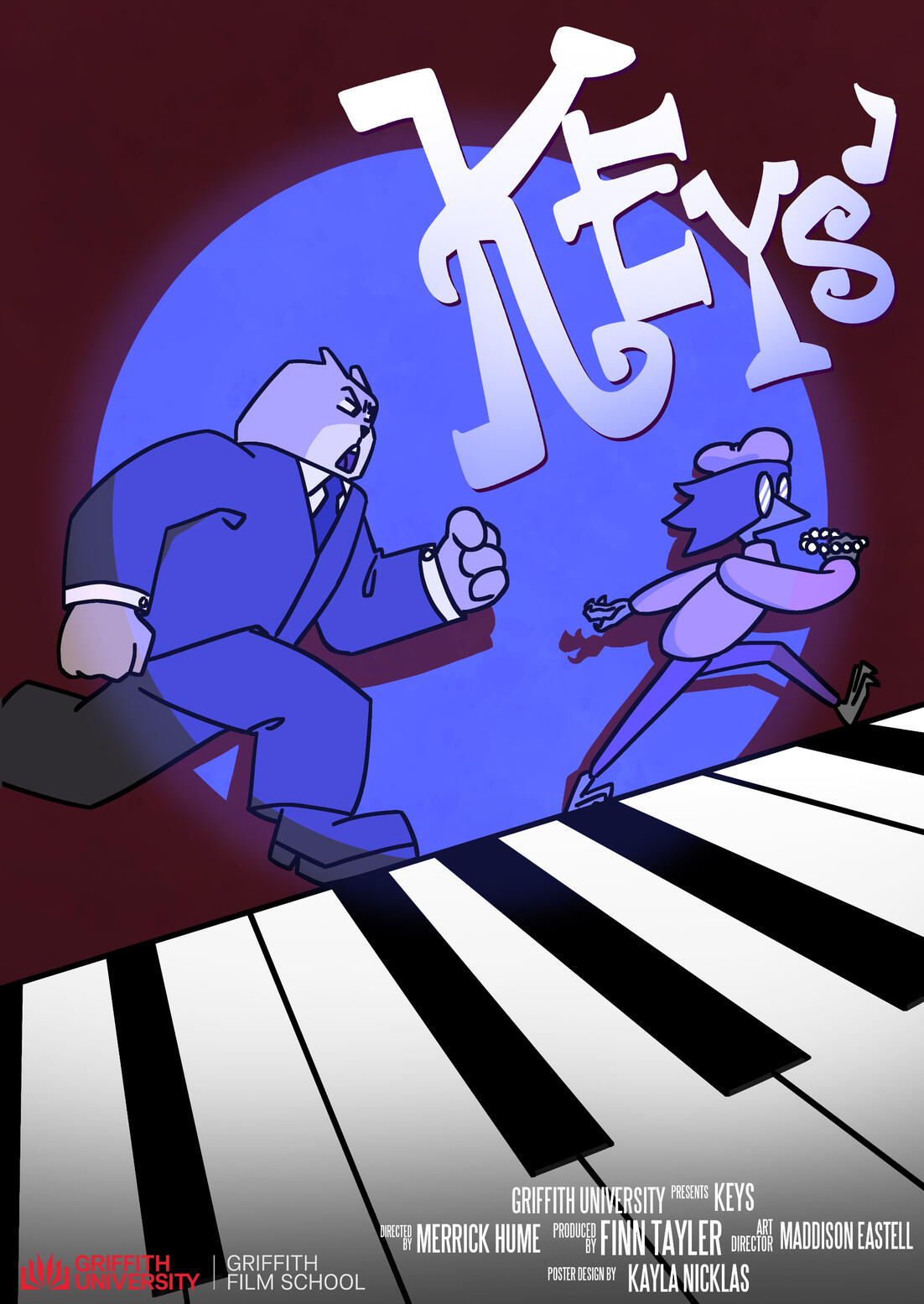 A 2D animated short film where Keys, a sly pickpocket, arrives at a jazz bar to plunder its guests of their valuables. He is continuously distracted by the melody of the band, and the bouncer catches him red handed. In a high tempo chase Keys finds himself on stage with nothing left to do but give a triumphant performance.